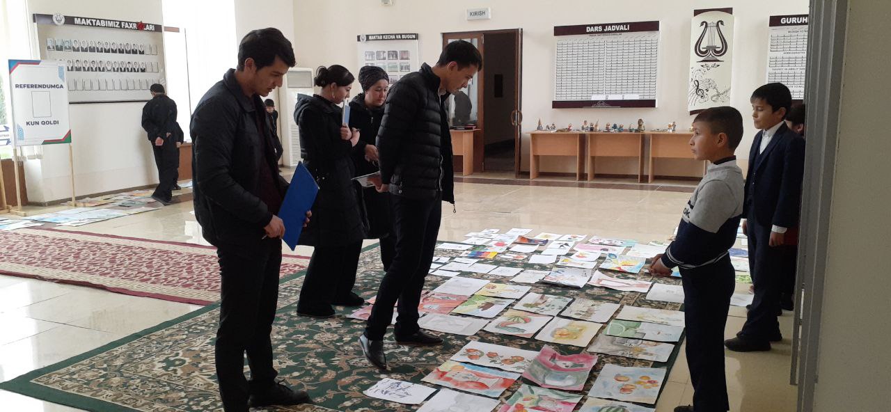 Imtihonni maktabning direktori I.Maxmudov boshchiligidagi malakali ustozlar ko'zdan kechirib baholab borishdi.