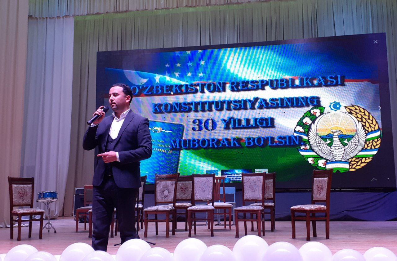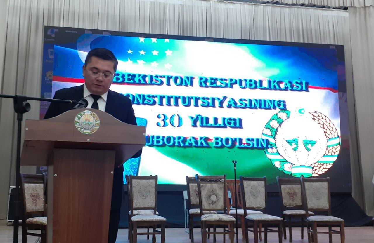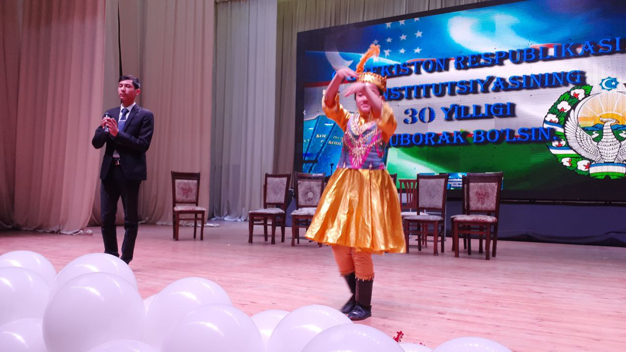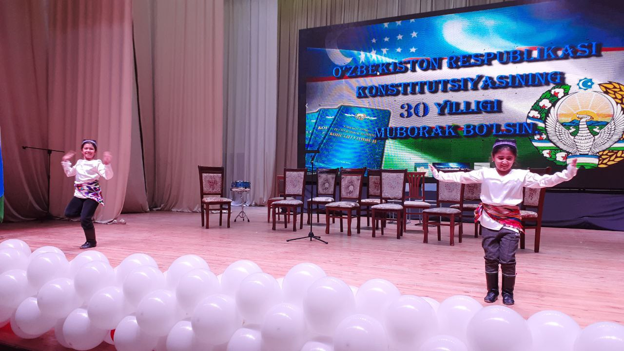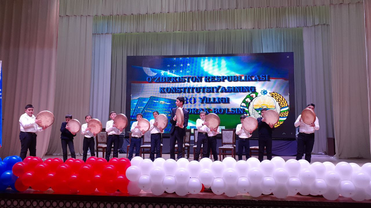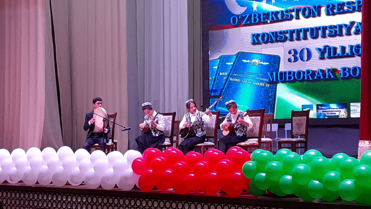 Конституция қабул қилинганлигининг 30 йиллиги барча идораларда кенг нишонланмоқда, шу жумладан Шаҳрисабз туман ҳокимлиги, Туман Маданият бўлими ҳамда Шаҳрисабз туман 16-сон болалар мусиқа ва санъат мактаби биргаликда байрам тадбири ўтказишди.