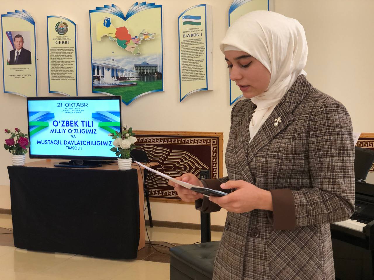 Shu boisdan yurtimizda 21-oktabr "O'zbek tiliga davlat tili maqomi berilgan kun" sifatida keng nishonlanadi. Ushbu kunda Shahrisabz tumanidagi 16-son Bolalar musiqa va san'at maktabida ham "O'zbek tili-milliy o'zligimiz va mustaqil davlatchiligimiz timsoli" shiori ostida tadbir bo'lib o'tdi. Tadbirda maktabning barcha bo'lim o'quvchilari ona tilimizni tarannum etuvchi she'rlar va kuy-qo'shiqlari bilan faol ishtirok etishdi. Tadbir so'ngida maktabning o'quv ishlari bo'yicha direktor o'rinbosari N. Abdiaxatova so'zga chiqib ona tilimiz haqida va uning tarixi haqida nutq so'zlab yig'ilganlarga samimiy tadbrigini izhor etdi.